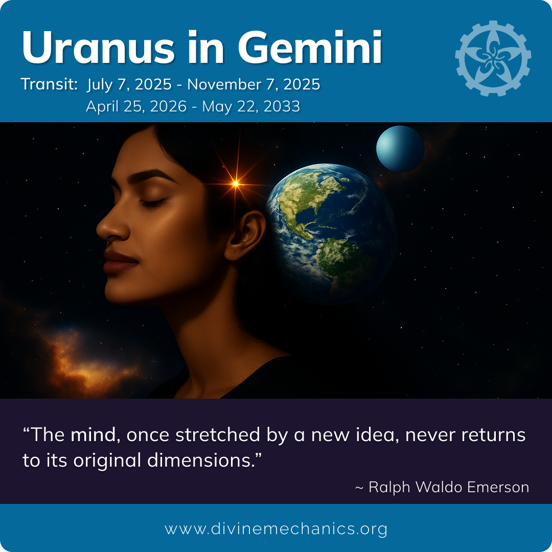 Starting a new 7-year cycle, Uranus will enter Gemini on July 7, 2025, where it will stay until November 7, 2025, before briefly retrograding back into Taurus. Then, on April 25, 2026, it re-enters Gemini for good, and will remain there until May 22, 2033.